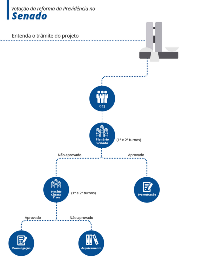 A reforma da Previdência tem prazo de 30 dias para ser discutida na CCJ do Senado. Nesses primeiros dias, deverão ter debates em audiências públicas com a participação de representantes de trabalhadores e de empresários. A expetativa é de que Tasso apresente o relatório na comissão no dia 28 de agosto. Depois de apreciada na CCJ a matéria precisa passar por dois turnos de votação no plenário da Casa onde para ser aprovada precisaria de 49 dos 81 votos de senadores em cada turno.